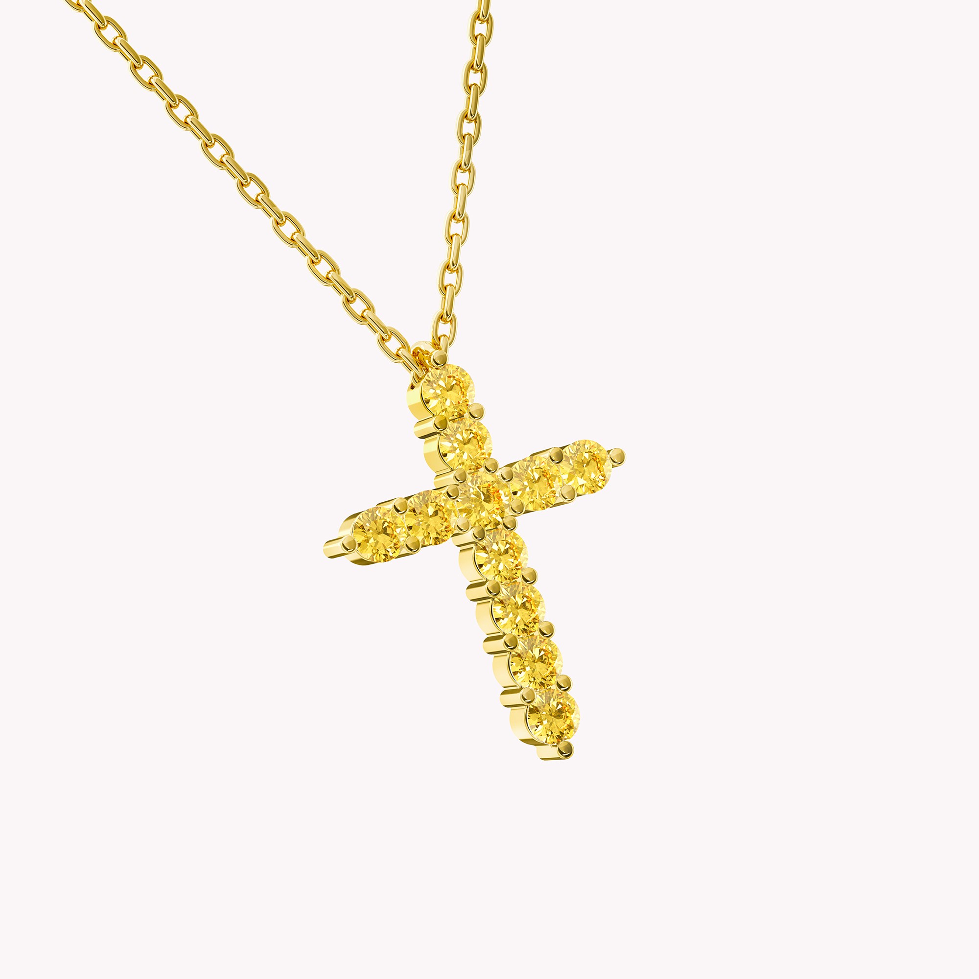 ოქროს ჯვარი ყვითელი ბრილიანტებით ხელმისაწვდომია სხვადასხვა კარატიანი წონის დიაპაზონში.